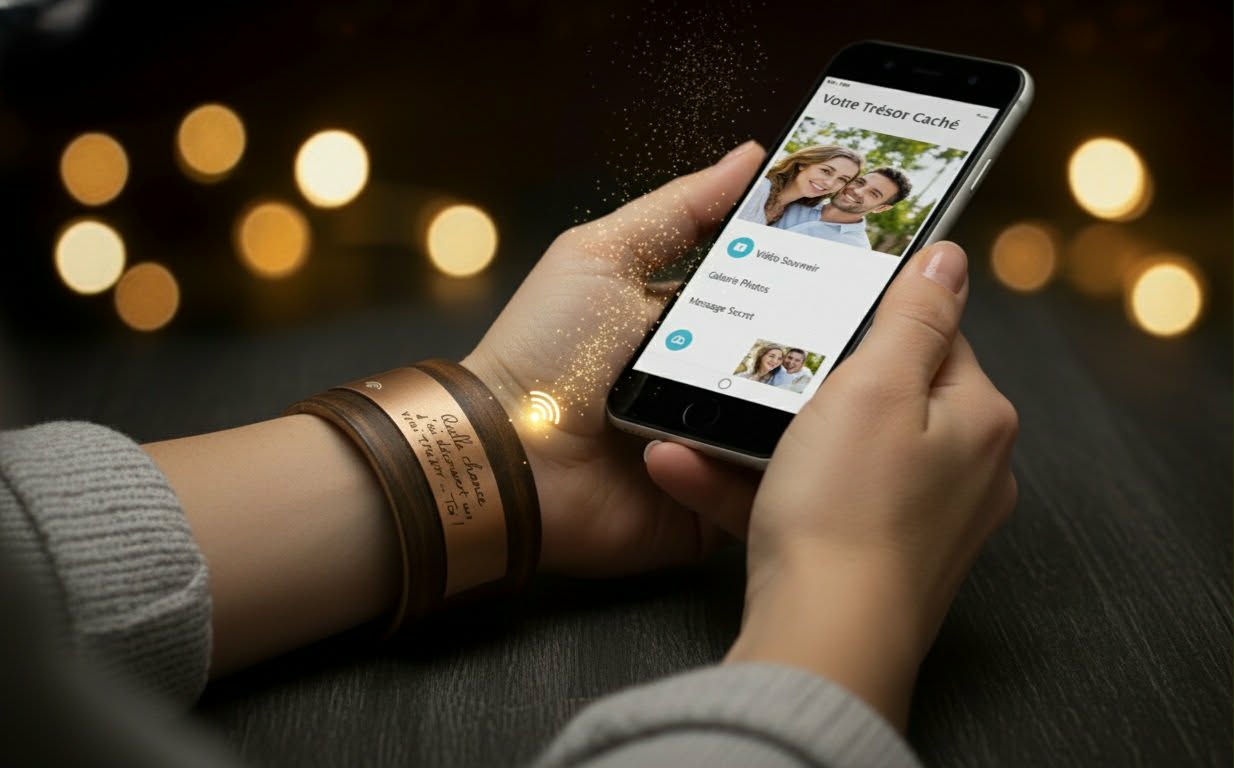 Le résultat est une création unique au monde qui porte votre histoire visible. En choisissant d'y ajouter notre option Le Trésor Caché, vous transformez ce bijou en une clé secrète donnant accès à une page web privée. Cette page, uniquement accessible par le détenteur du bijoux, peut contenir vos vidéos, vos messages vocaux, textes et/ou vos photos, transformant un magnifique cadeau en une expérience inoubliable.